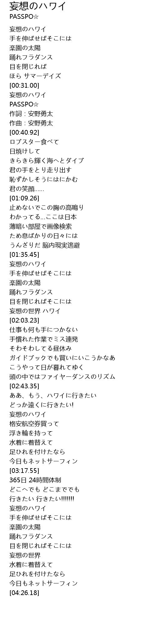 | [02:50.31] | 妄想のハワイ |