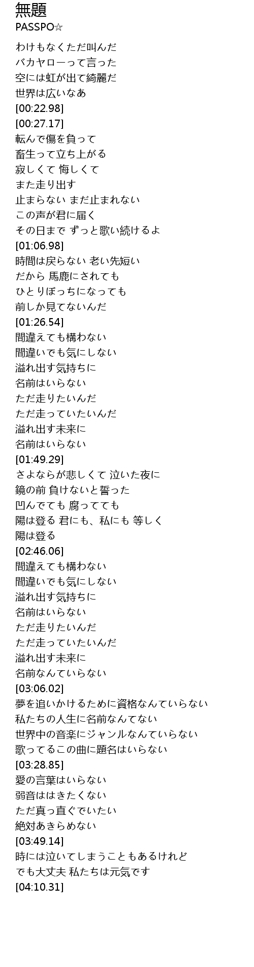 | [03:24.01] | 歌ってるこの曲に題名はいらない |