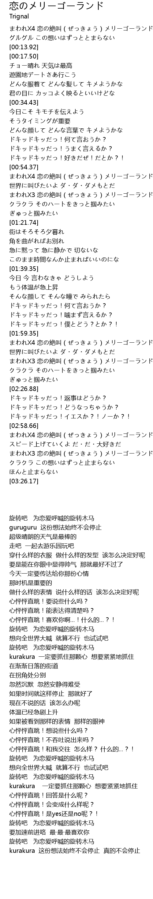 | [02:13.11] | まわれX3 恋の絶叫(ぜっきょう)メリーゴーランド |