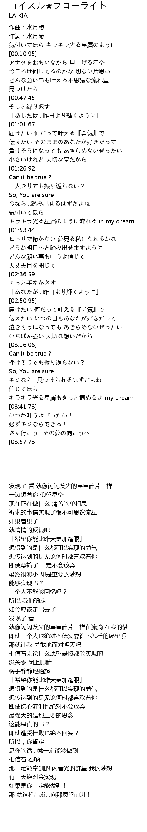 | [01:42.50] | キラキラ光る星屑のように流れる in my dream |