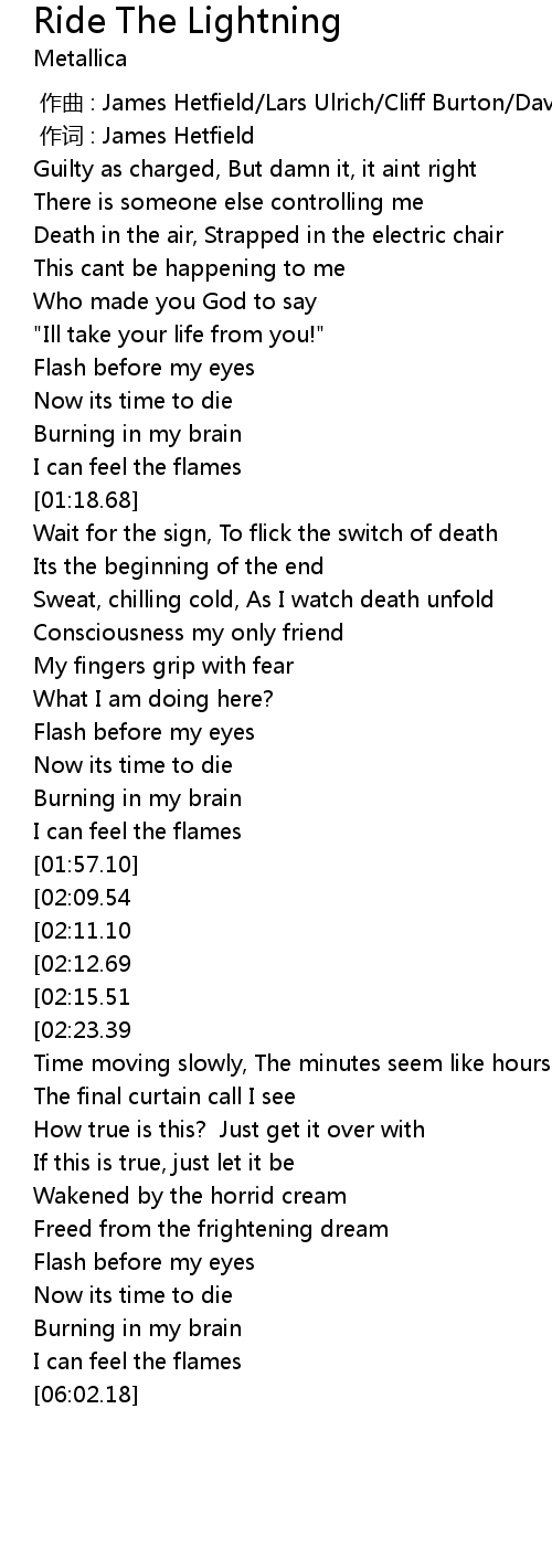 | [00:01.00] | 作词 : James Hetfield |