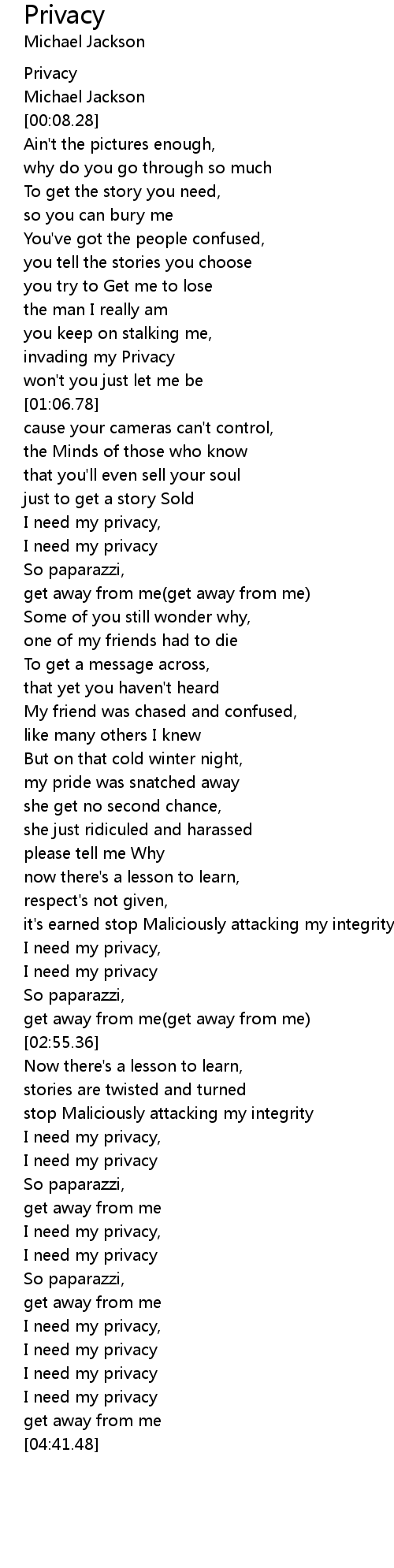 I need my privacy, |