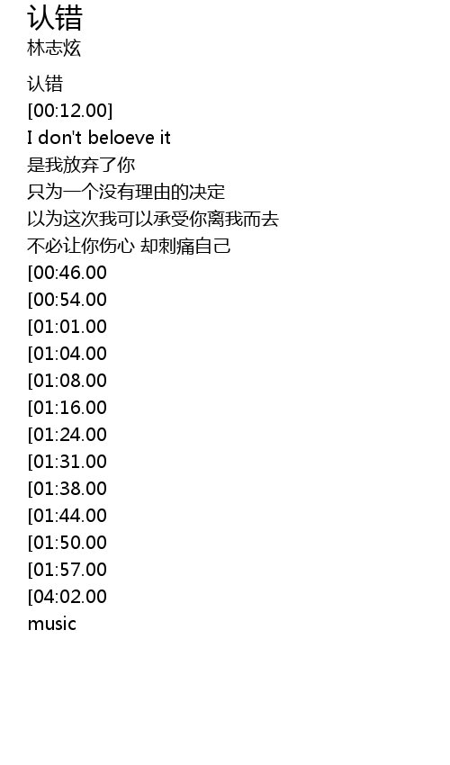 | [00:00.00] | 认错 |