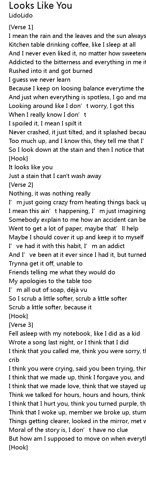 | Think that I woke up, member we broke up, stumbled to the bathroomsink | |