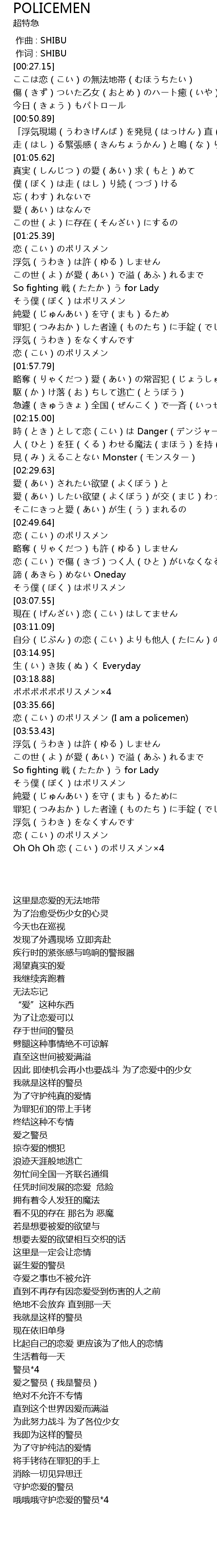 | [03:50.92] | 恋(こい)のポリスメン (I am a policemen) |