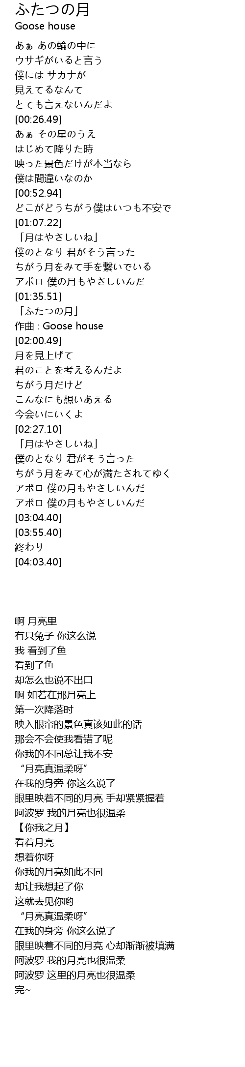 | [02:53.89] | アポロ 僕の月もやさしいんだ |