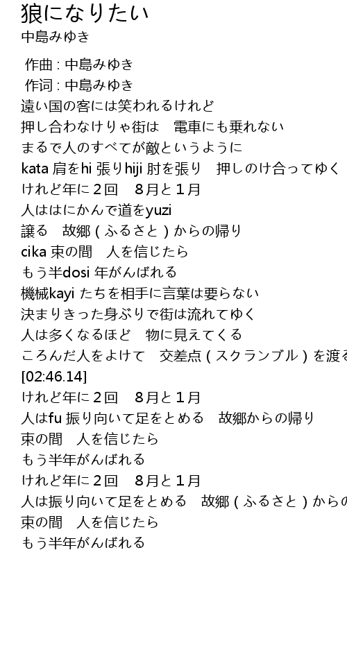 | [00:00.688] | 作词 : 中島みゆき |
