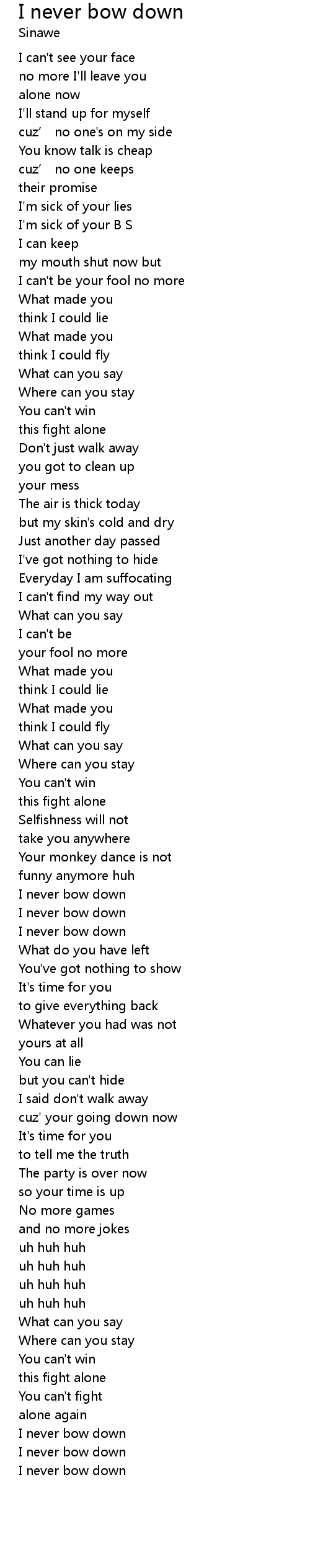 | I never bow down | |