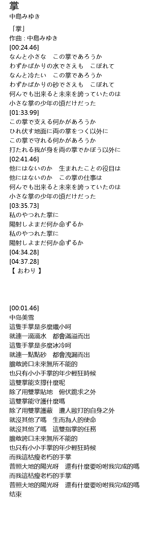 | [00:01.46] | 「掌」 |