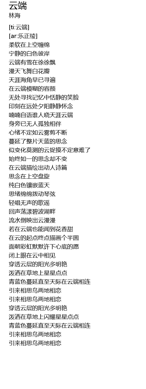 | [04:42.642] | qing lan se man yan zhi zhi tian ji zai yun duan xiang lian |