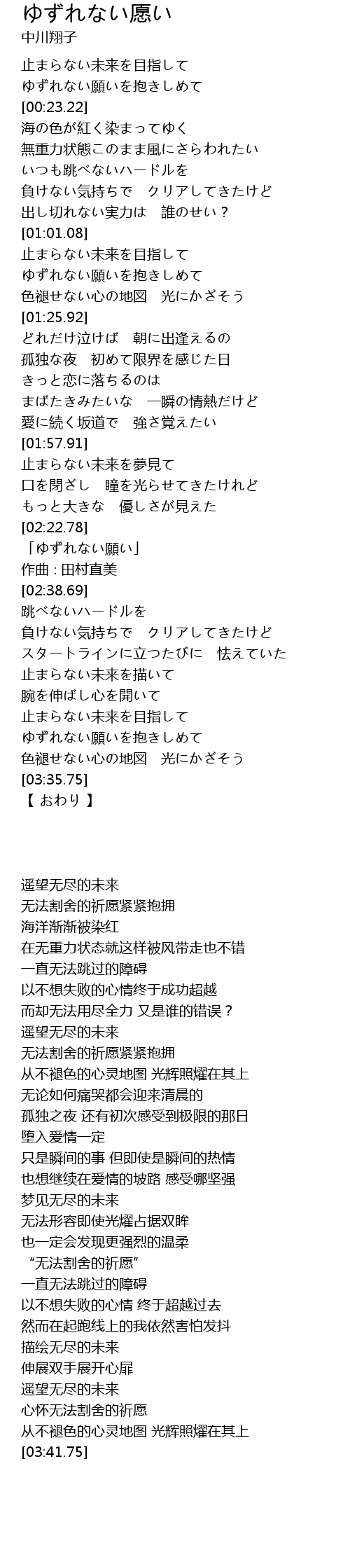 | [03:17.38] | ゆずれない願いを抱きしめて |