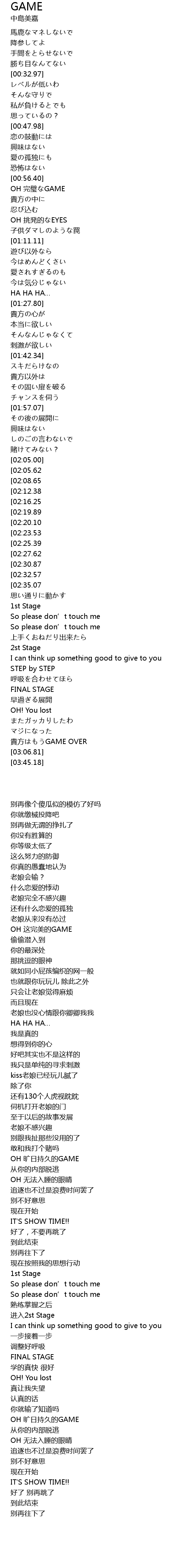| [03:08.46][02:05.62] | OH zhōng GAME |