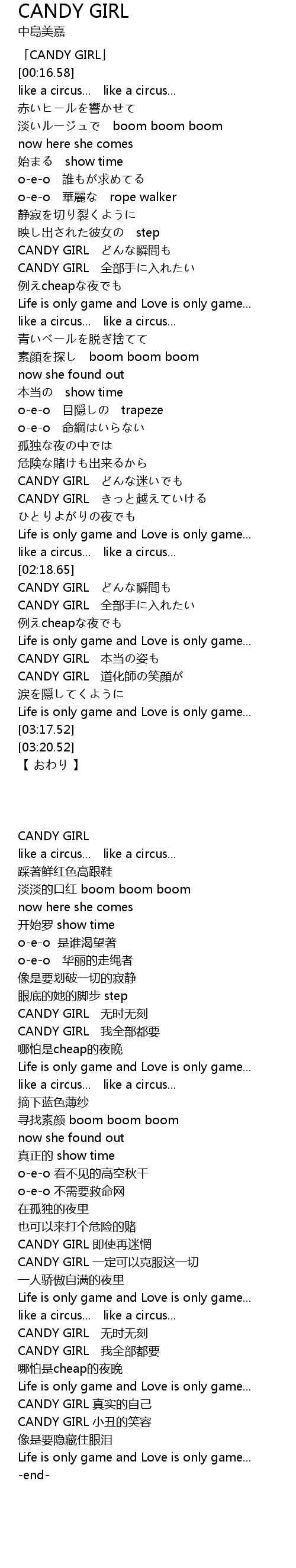| [03:03.04] | CANDY GIRL 本当の姿も |
