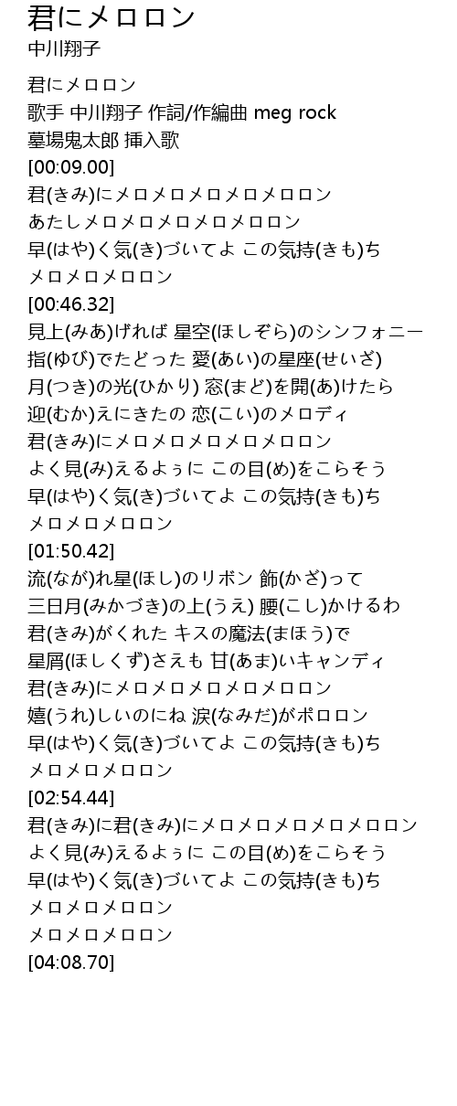 | [02:22.75] | 君(きみ)にメロメロメロメロメロロン |
