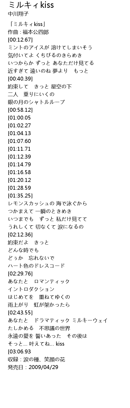 | [00:04.67] | 「ミルキィkiss」 |