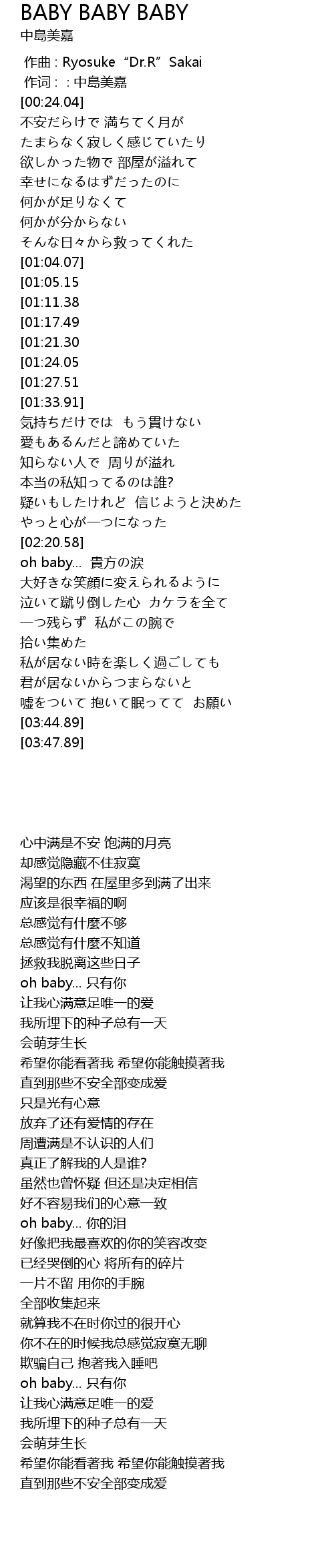 | [01:05.15] | oh baby... 只有你 |