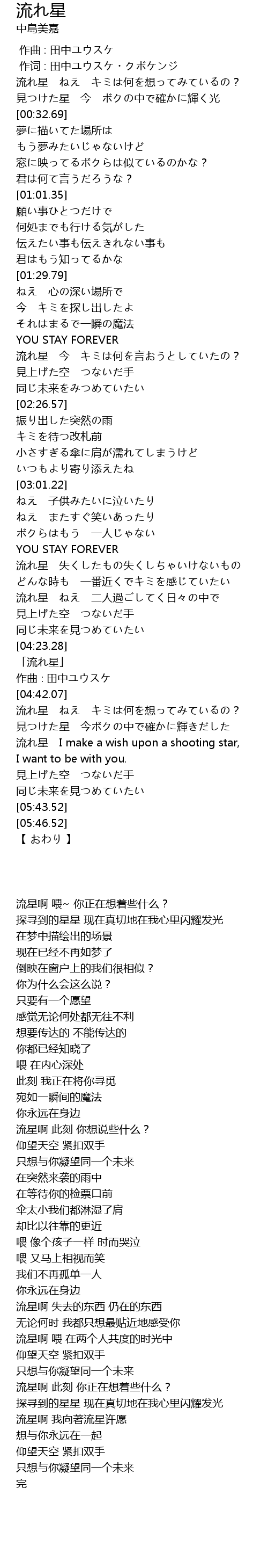 | [05:10.34] | 流星啊 我向著流星许愿 |
