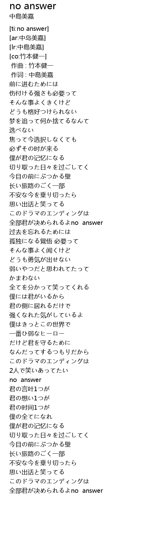 | [03:40.89] | 全部君が决められるよno answer |