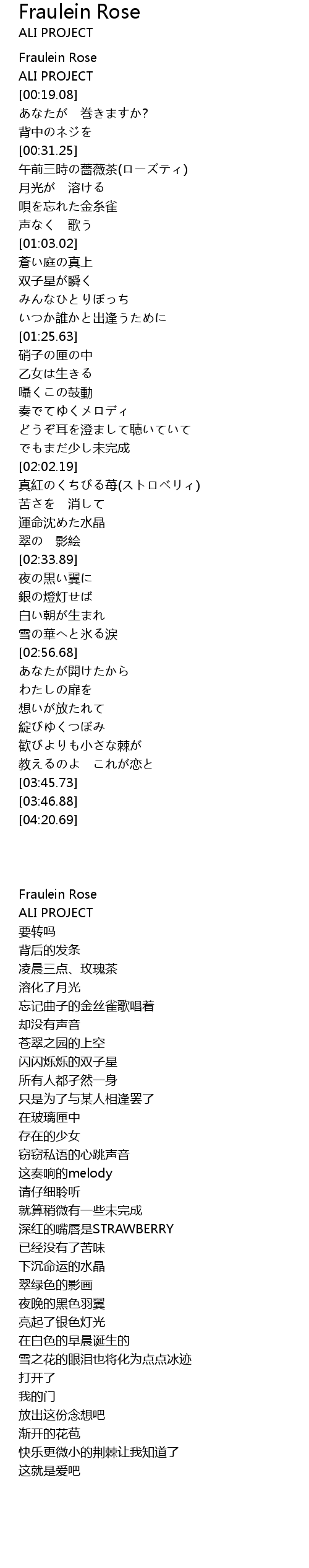 | [00:43.15] | 凌晨三点、玫瑰茶 |