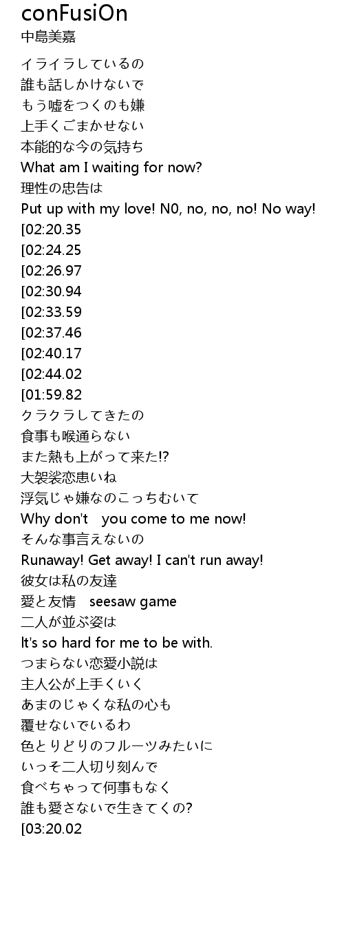 | [00:32.31] | Put up with my love! N0, no, no, no! No way! |
