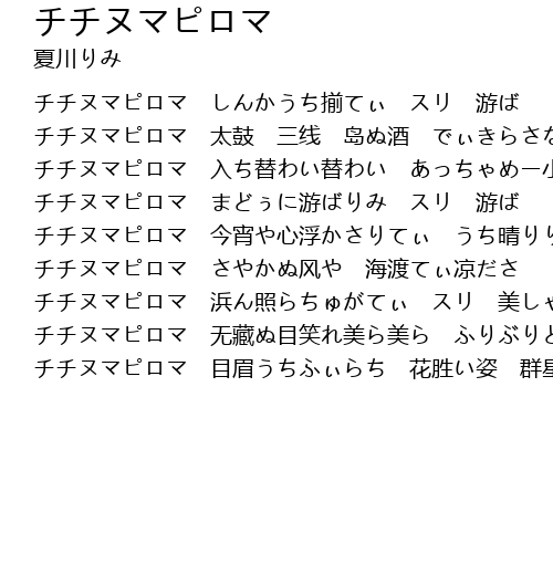 | チチヌマピロマ 入ち替わい替わい あっちゃめー小 舞ら | |