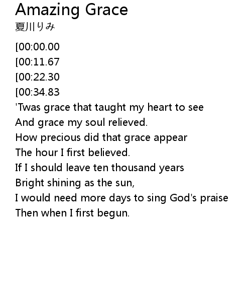 | [02:18.92][00:00.00] | Amazing grace, how sweet the sound |