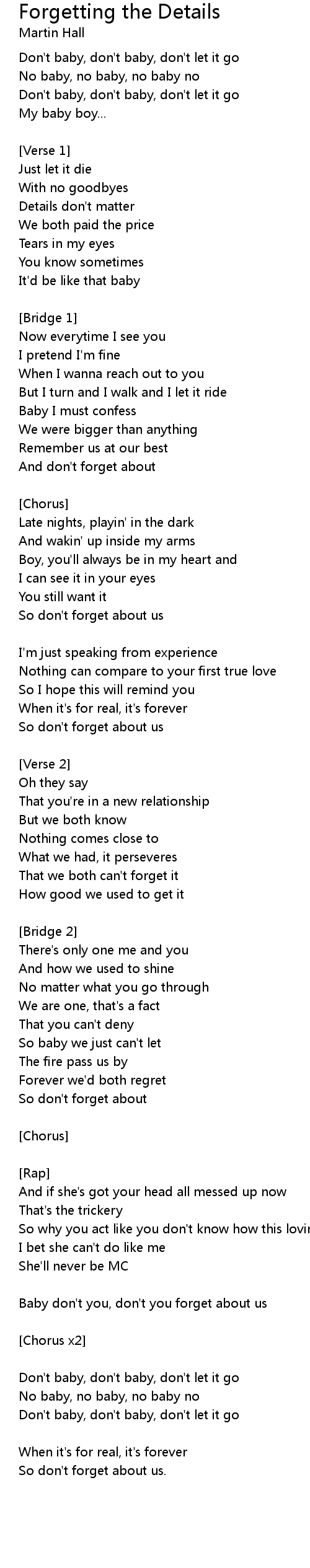 Baby don't you, don't you forget about us |