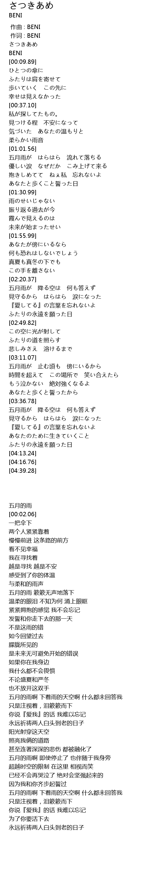 | [00:00.00] | zuo ci : BENI |