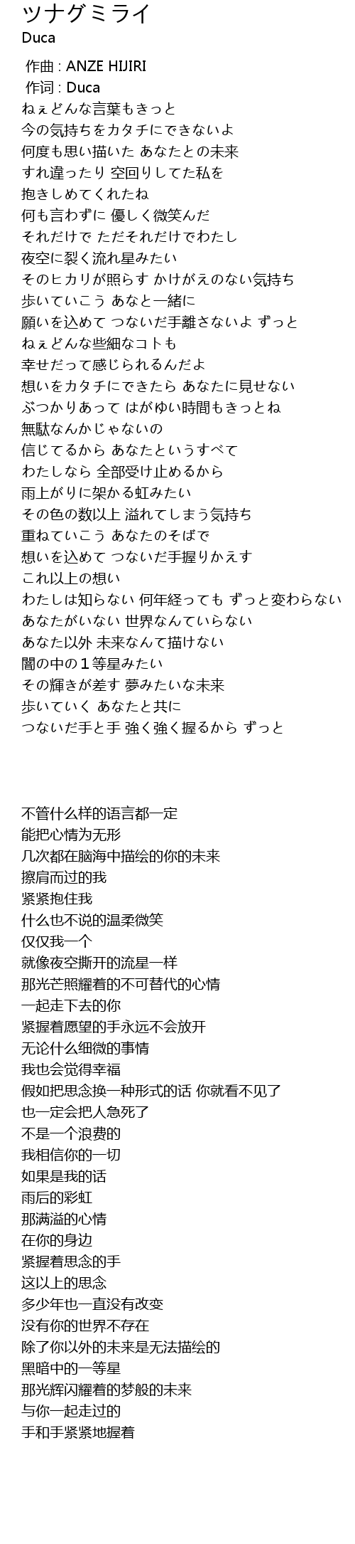 | [01:32.500] | 願いを込めて つないだ手離さないよ ずっと |