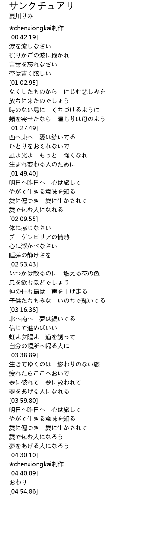 | [00:49.12] | 揺りかごの波に抱かれ |