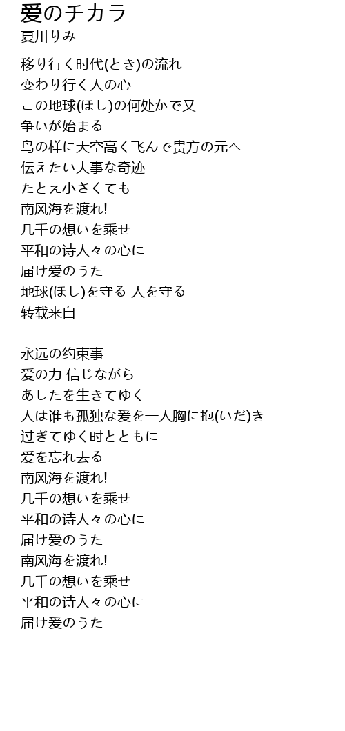 | 鸟の样に大空高く飞んで贵方の元ヘ | |