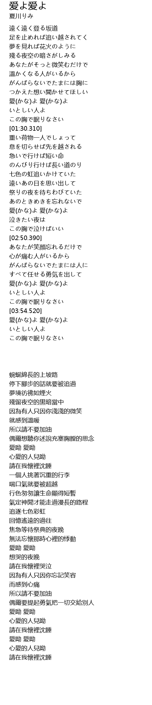 愛(かな)よ 愛(かな)よ |