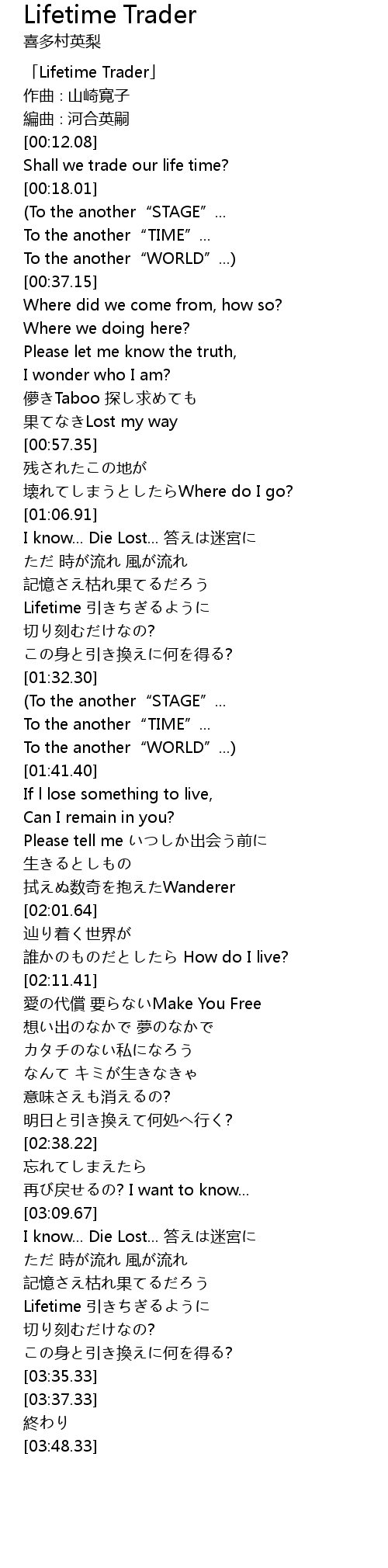 | [00:00.08] | 「Lifetime Trader」 |