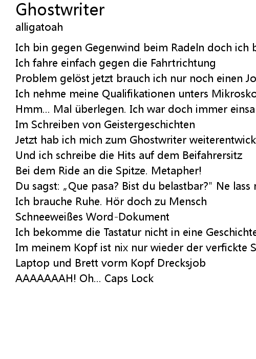 | [00:36.25] | Jetzt hab ich mich zum Ghostwriter weiterentwickelt |