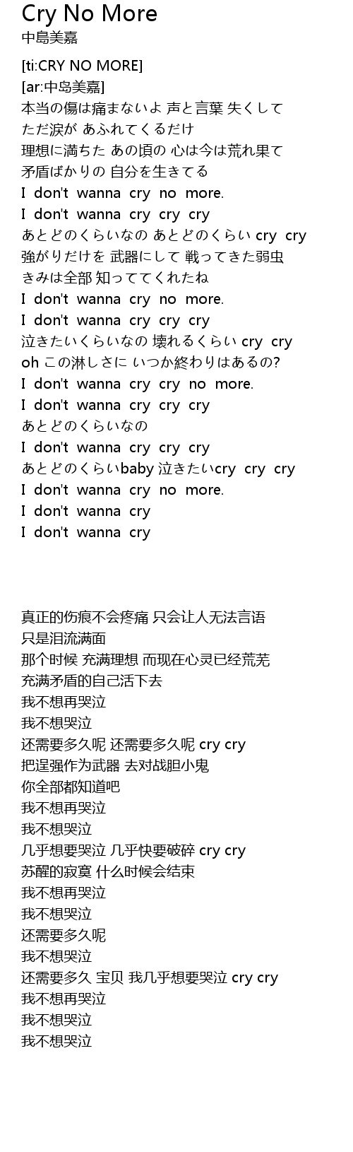 | [02:54.92] | I don' t wanna cry cry no more. |