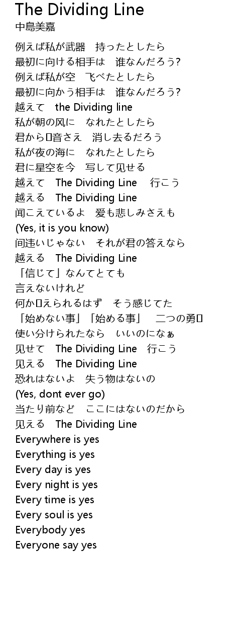 | [01:36.03] | 越えて The Dividing Line 行こう |