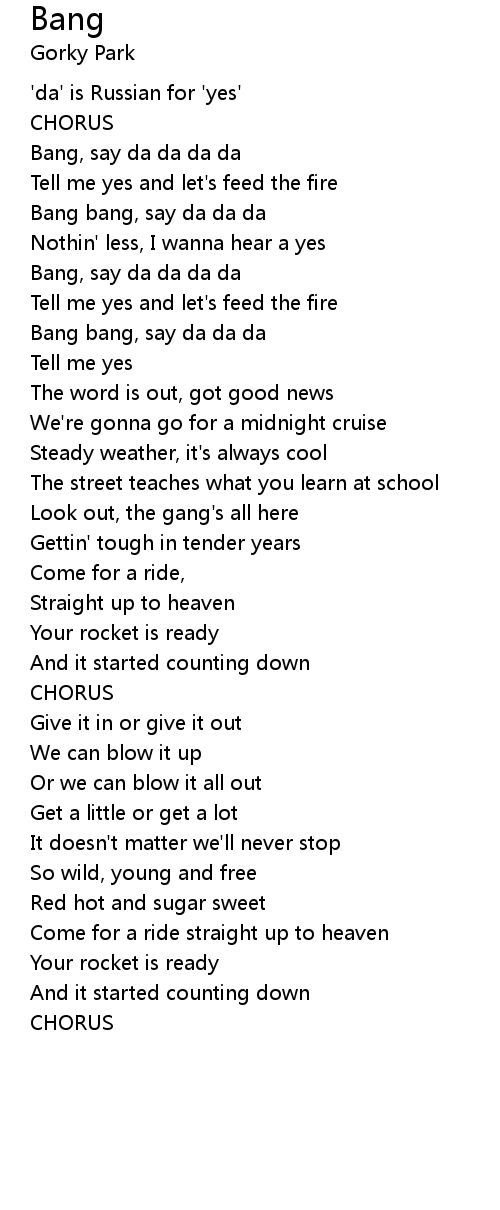 Bang, say da da da da |