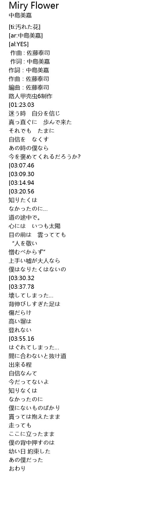 | [00:11.53] | 作詞:中島美嘉 |
