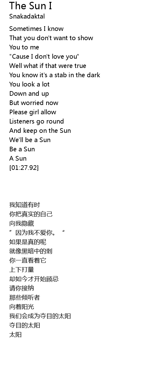 | [01:15.66] | 我们会成为夺目的太阳 |
