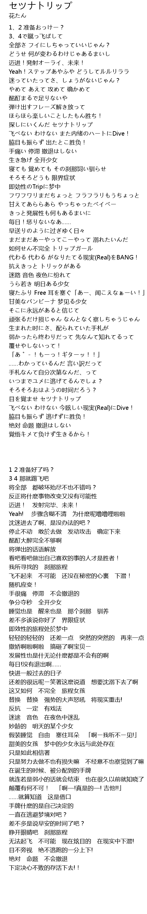 | [03:26.58] | 目を覚ませ セツナトリップ |