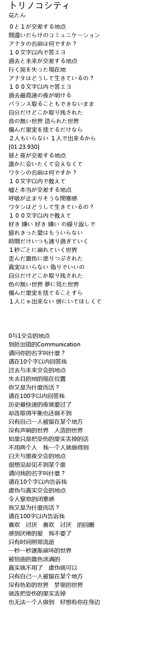 | [01:10.920] | 音の無い世界 造られた世界 |