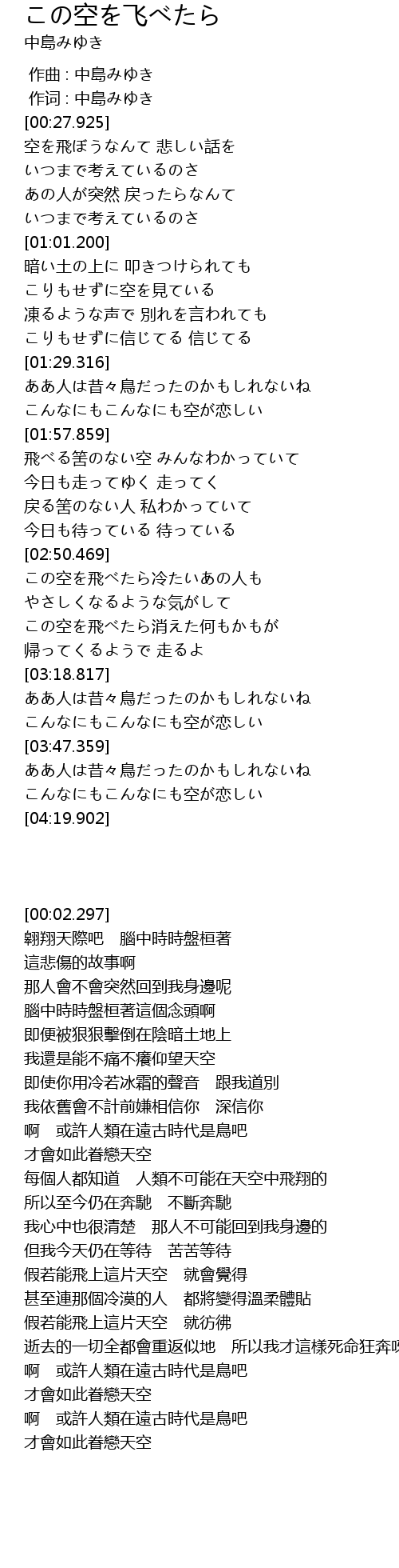 作词 : 中島みゆき |