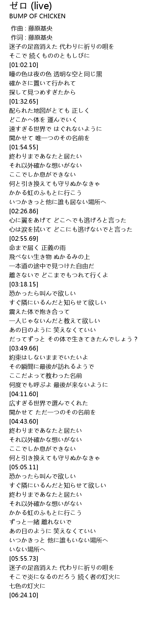 | [00:01.00] | 作词 : 藤原基央 |