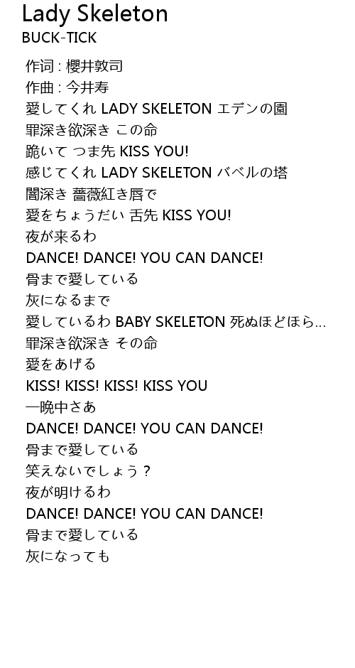 | [02:27.561] | 愛しているわ BABY SKELETON 死ぬほどほら… |