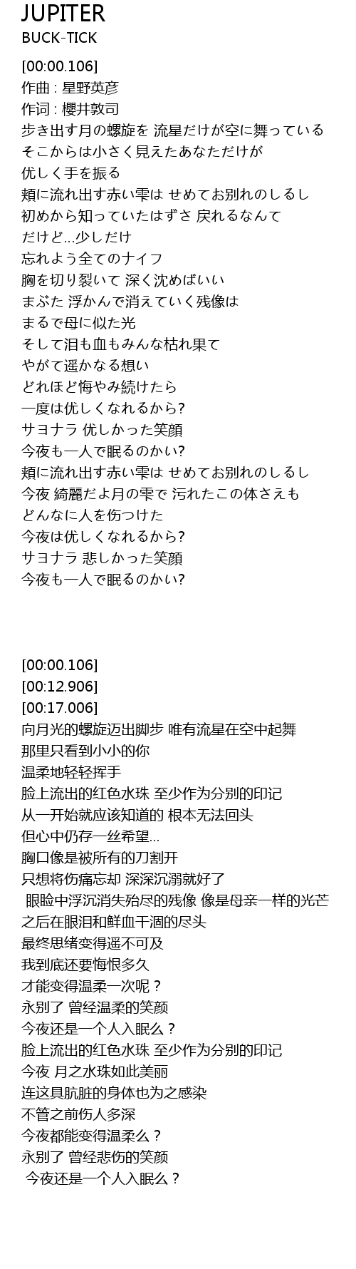 | [00:17.006] | 作词 : 櫻井敦司 |