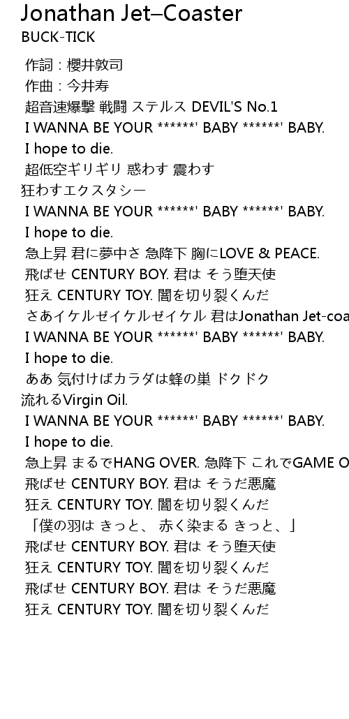 | [01:18.290] | さあイケルゼイケルゼイケル 君はJonathan Jet-coaster |