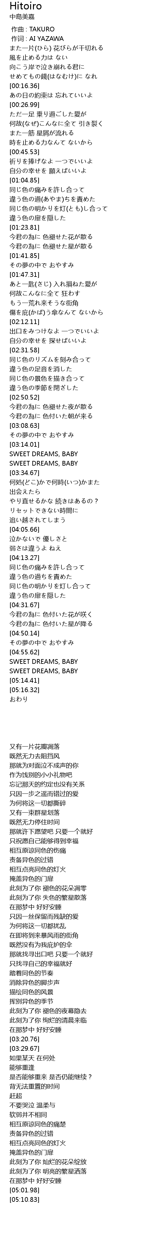 | [00:00.17] | zuo ci : AI YAZAWA |