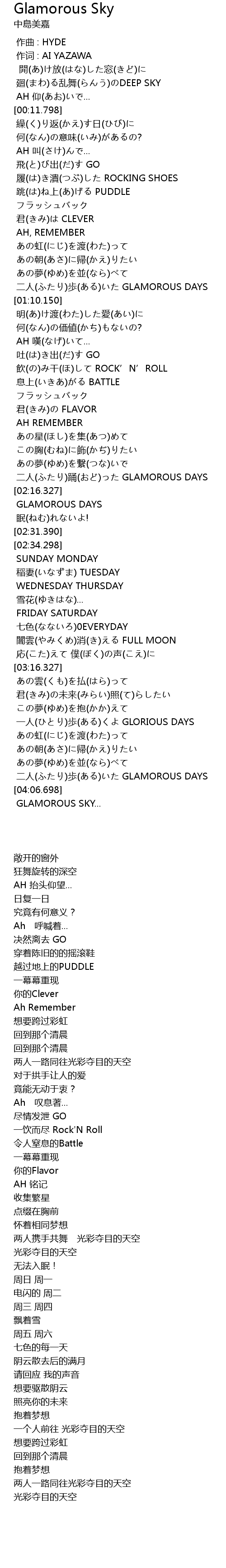 | [01:04.310] | er ren bu GLAMOROUS DAYS |