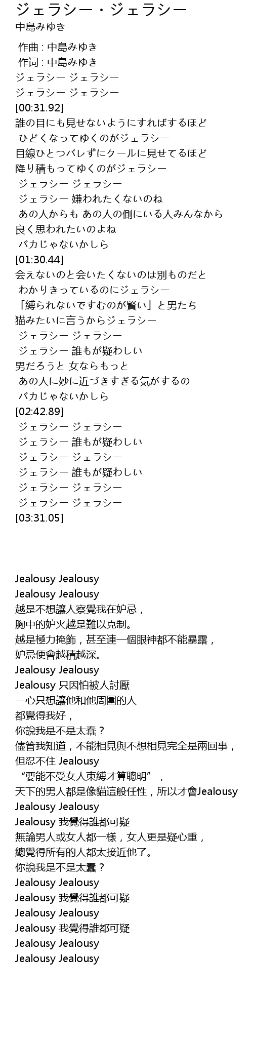 | [03:00.74] | ジェラシー 誰もが疑わしい |