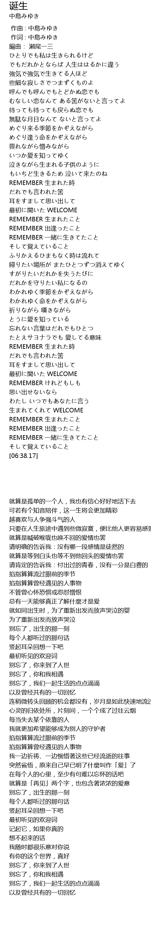 | [02:38.32] | REMEMBER 生まれたこと |